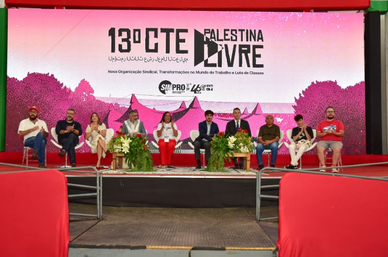 Tema do 13º CTE, a luta por uma Palestina livre compôs os discursos na mesa de abertura. Segundo o secretário da Federação Árabe Palestina (Fepal), Robson Cardoch Valdez, o tema discutido no congresso dialoga profundamente com a luta da sociedade e do povo palestino.