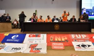 Nesta terça (12), trabalhadoras e trabalhadores promoveram o “Ato Nacional em Defesa do Pré-Sal para a Educação” no auditório Nereu…