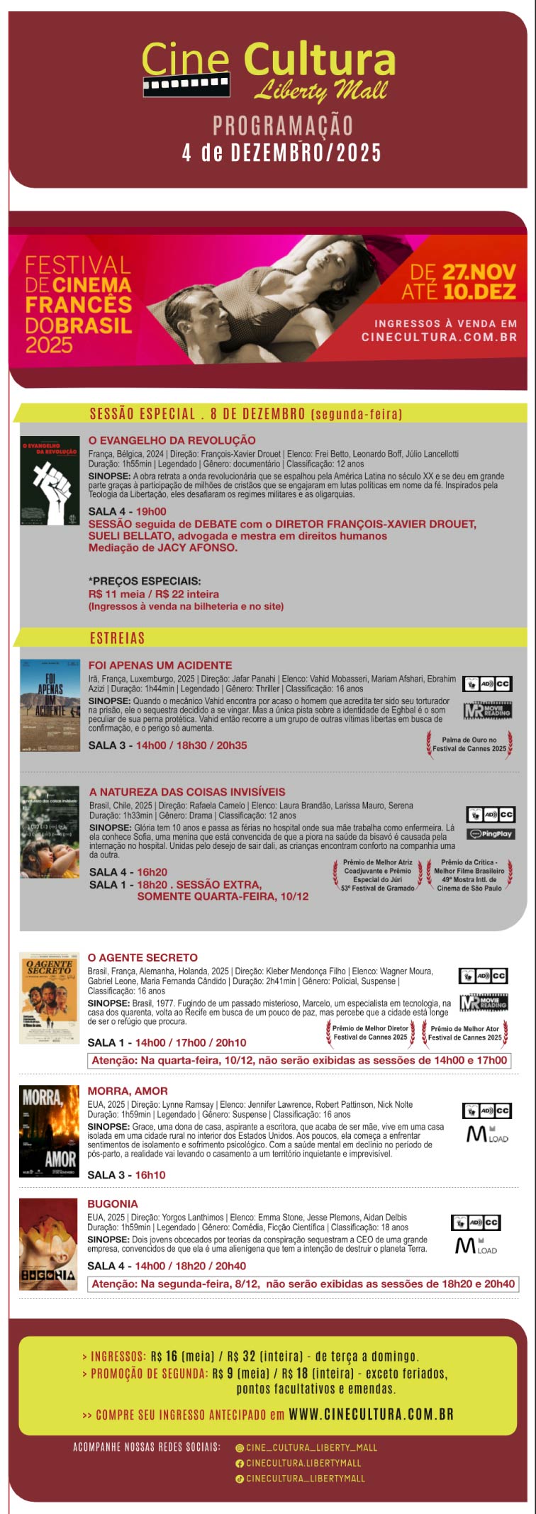 Importante destacar que o benefício do dia do Sinpro no cinema do Liberty Mall é somente às quintas-feiras.
