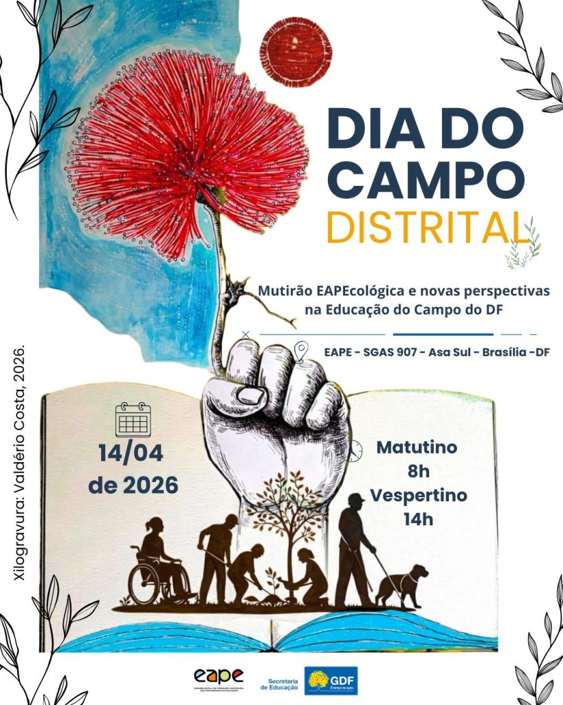 A Unidade Escola de Formação Continuada dos Profissionais da Educação (EAPE) promove, dia 14 de abril, o Mutirão EAPEcológica: plantio envolvendo Agricultoras(es), Educadores e Estudantes das Escolas do Campo do DF. A programação será realizada em dois turnos – às 8h e às 14h -, voltada para professores(as), orientadores(as) educacionais, estudantes e toda a comunidade escolar.
