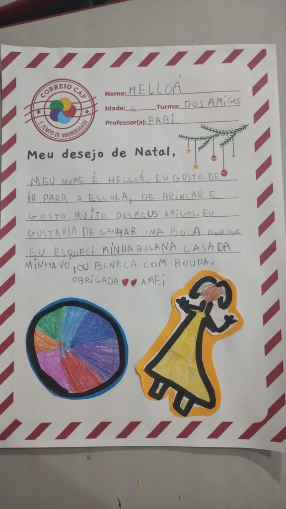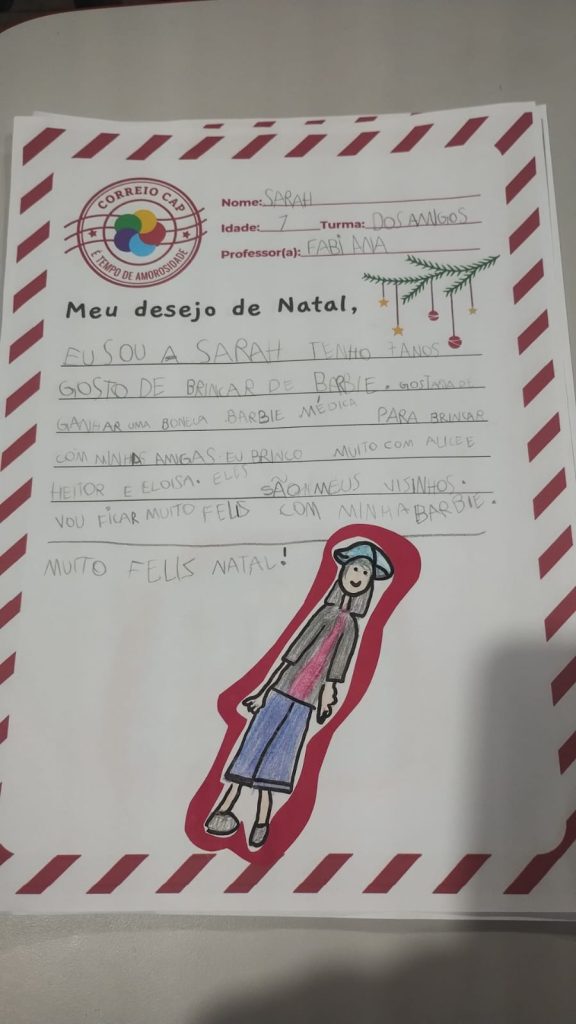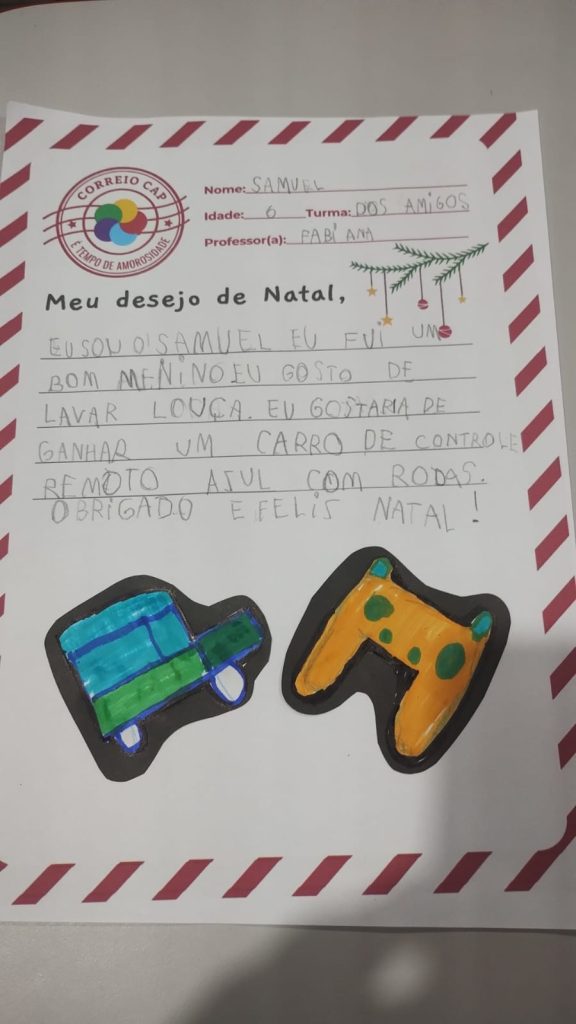Para quem quer participar, mas não tem disponibilidade para comprar o presente, o valor do objeto indicado na cartinha pode ser depositado no PIX de chave 03638638693 (Renata).