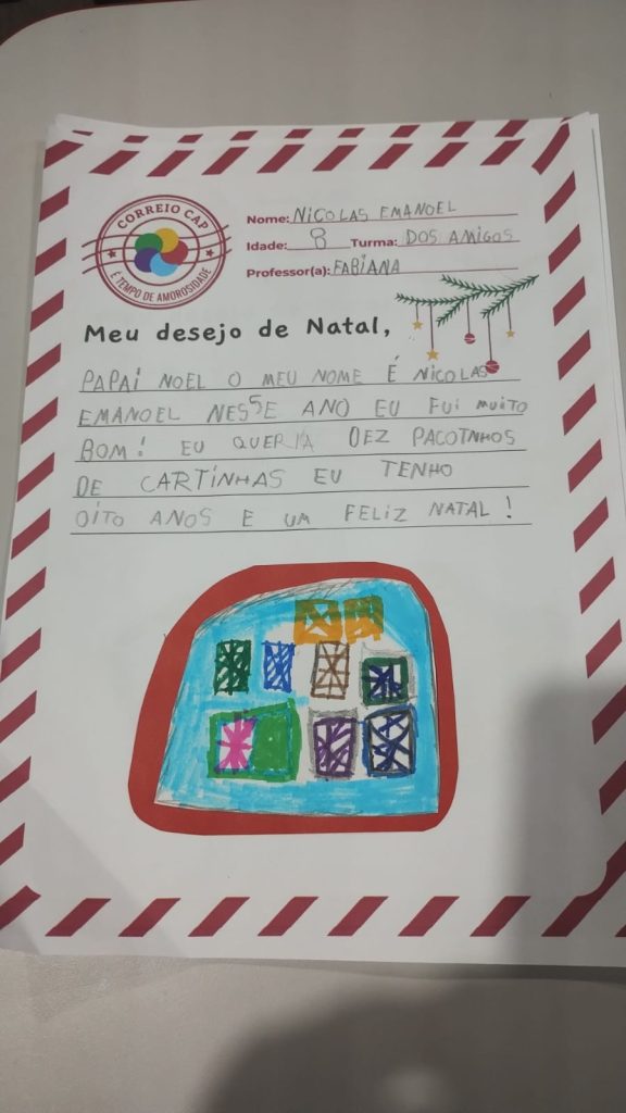 Com a chegada do Natal, a Escola Classe Comunidade de Aprendizagem do Paranoá reativa o projeto “Cartinhas de Natal”. Como nos anos anteriores, a unidade escolar convida professores(as) e orientadores(as) educacionais a participarem, “adotando” um(a) aluno(a), que receberá um presente ou ajuda financeira. A escola atende crianças de 6 a 10 anos em situação de vulnerabilidade social, residentes no Paranoá, Paranoá Parque e Itapoã.