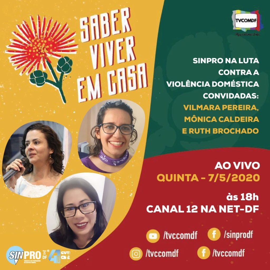 O programa Saber Viver em Casa desta quinta-feira (07) recebe as diretoras da Secretaria de Assuntos e Políticas para Mulheres Educadoras do Sinpro-DF, Vilmara Pereira, Ruth Oliveira Brochado e Mônica Caldeira.