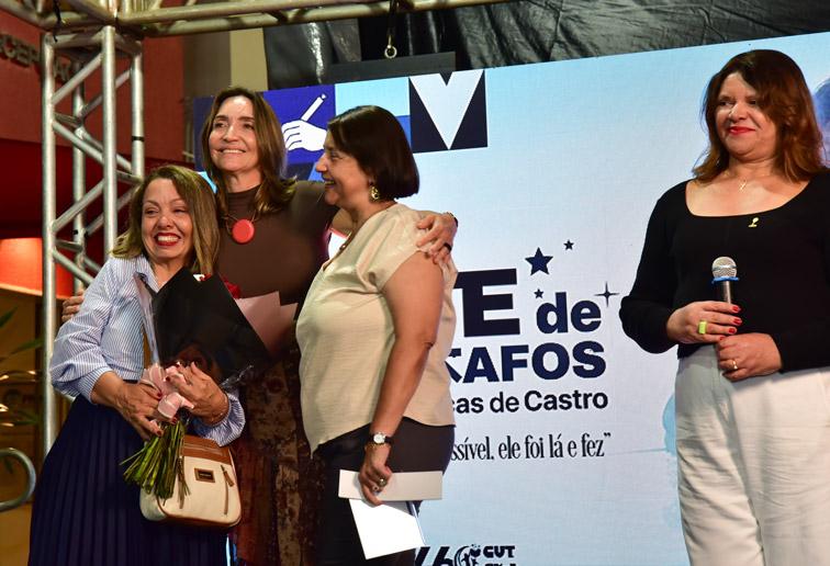 “Eu estou muito feliz por estar aqui nesta noite e parabenizo o Sinpro. Ver esse tanto de mulher escrevendo e contando histórias é lindo. Meus livros têm saudades, memória, espanto, questionamento e um pouco de esperança, porque a gente precisa ter esperança para viver”, disse.