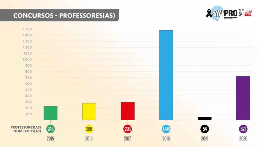 Da gestão de Rodrigo Rollemberg (PSB) para cá, o sucateamento da escola pública e dos serviços públicos do DF por meio da contratação temporária aumentou significativamente. As poucas nomeações que ocorreram nesse período foram para vagas de antes das aposentadorias, mortes e demissões ocorridas a partir de 2015.