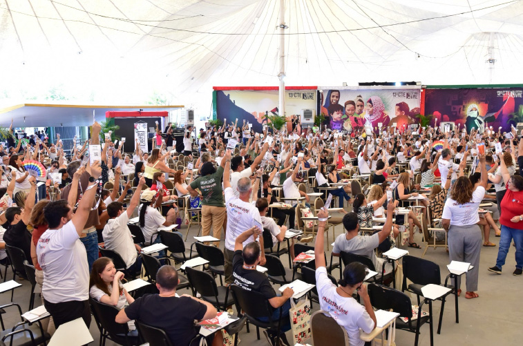 A tese guia “Mais Organização, Mais Lutas e Mais Conquistas!”, apresentada pela diretoria do Sinpro, fora aprovada no sábado. Os textos “Tese sobre genocídio palestino de 1948 ao conflito atual envolvendo palestinos e Israel”, do professor Antônio Ahmad Yusuf Dames, e “Defesa da saúde dos profissionais da educação!”, do Grupo de Pesquisa Saúde e Educação NOEG/EAPE/SEEDF, foram incorporados à tese aprovada.