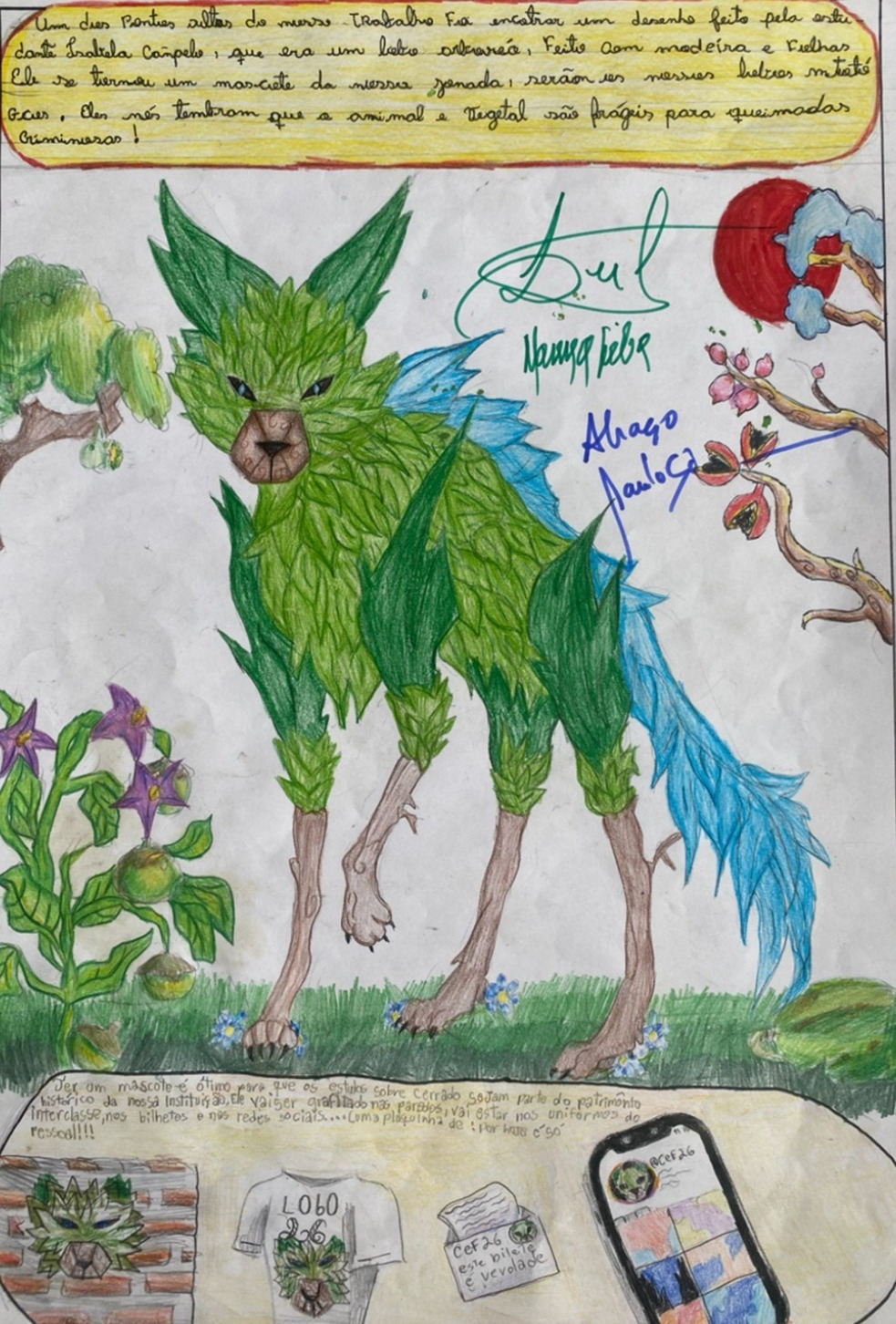 Trabalhando com o tema “Jornada Hidrográfica da Turma do Cerrado, baseado em Água para quê?”, os(as) estudantes da unidade escolar coletaram água pela cidade de forma simbólica, com o objetivo de plantar dois Ipês amarelos dentro da escola. Para ilustrar esta jornada, além de escrever um Diário de Bordo em formato de jornal, foi produzido um podcast para falar do projeto, com escrita e desenhos da segunda edição dos quadrinhos da Turma do Cerrado. Nela, os(as) apresentadores(as) do circuito são os protagonistas.